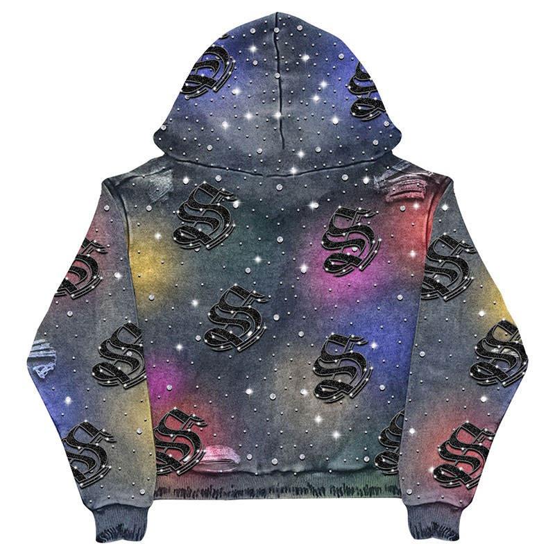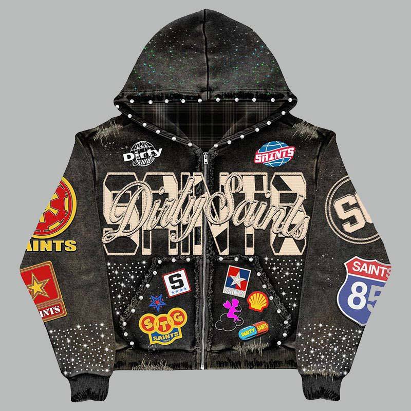 OEM industry Oversized Heavyweight 100% Cotton Zipper Jacket Rhinestone for Winter Custom Vintage Washed Sun Faded Hoodie Men
