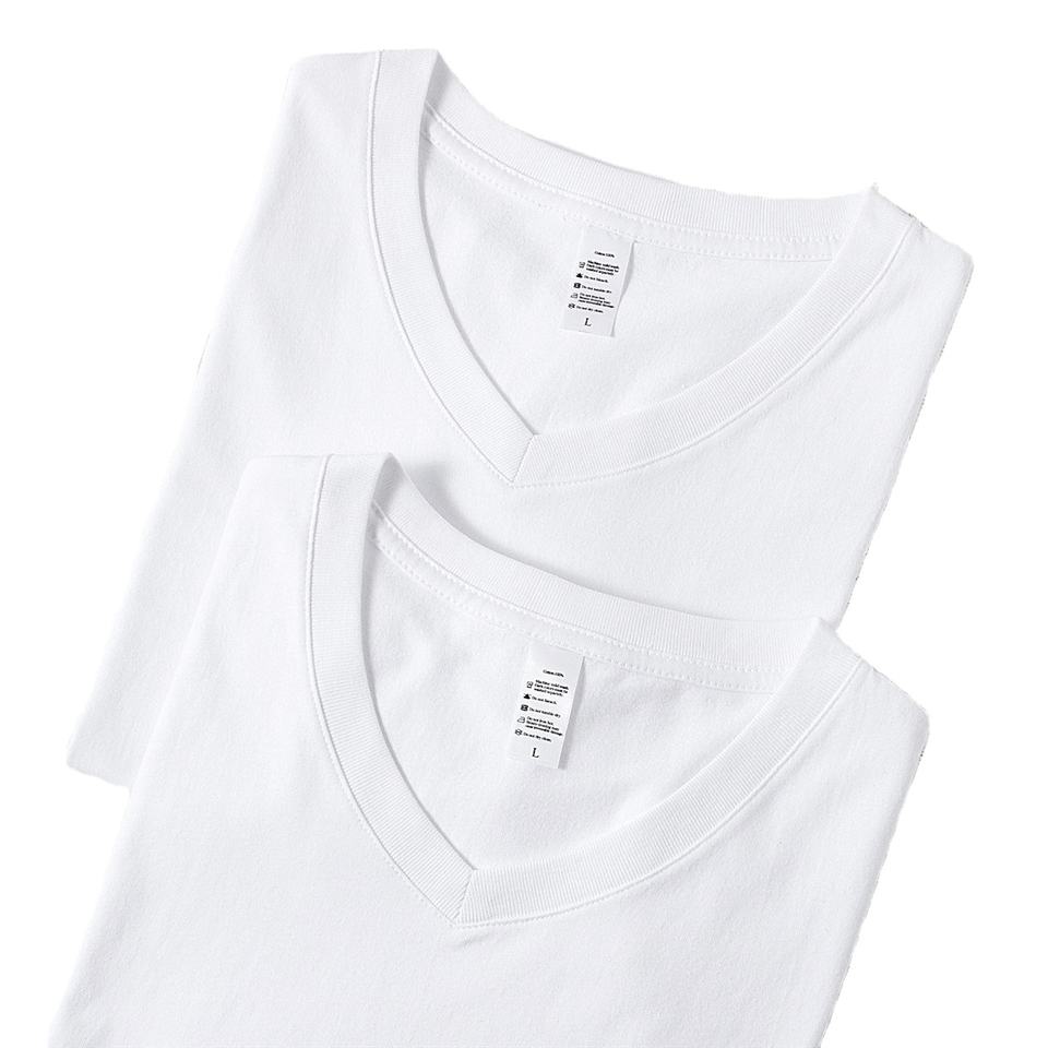 OEM logo 250gsm 100% Cotton Women V-neck Plain Short Sleeve T-shirt Printed logo Blank Unisex T-shirt for men