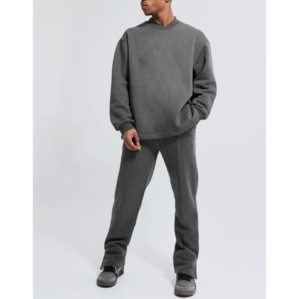 OEM men cotton fleece jogging tracksuit causal crewneck boxy fit sweatshirt& joggers breathable quick dry two piece set