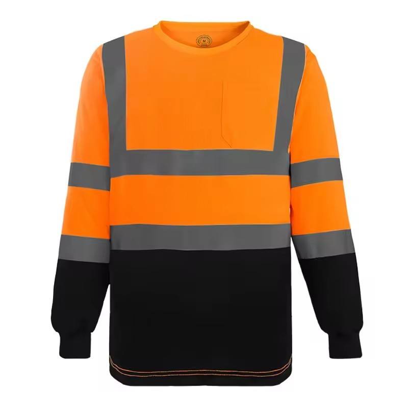 OEMODM Men Long Sleeve Summer Quick Dry High Visibility Workwear Shirt Safety Clothing with Reflective Material Contrast Color