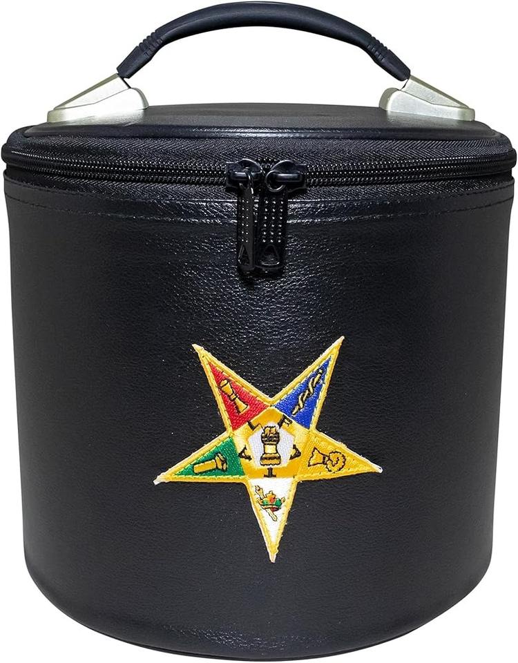 OES Black Fez Case Imitation Leather: Eastern Start Emblem, Hat Carrying Storage Box Made of premium black imitation leather