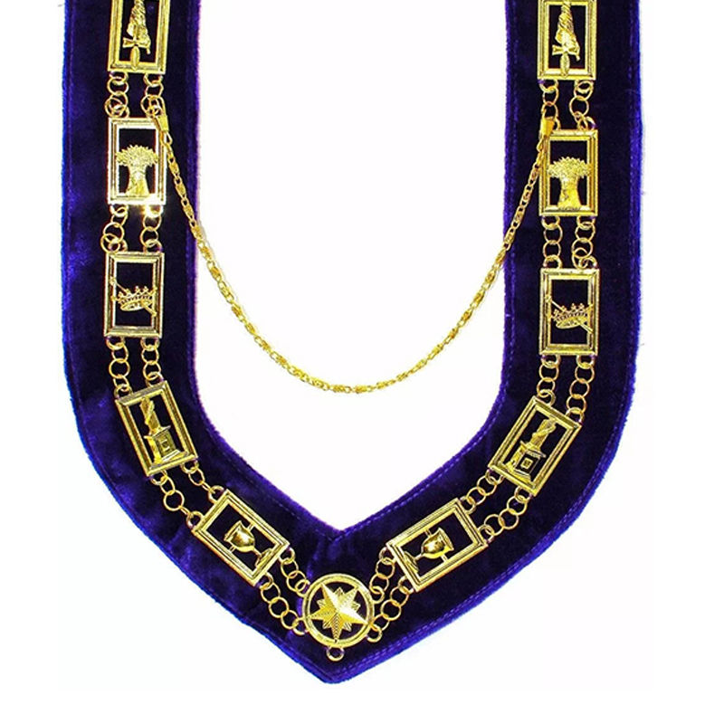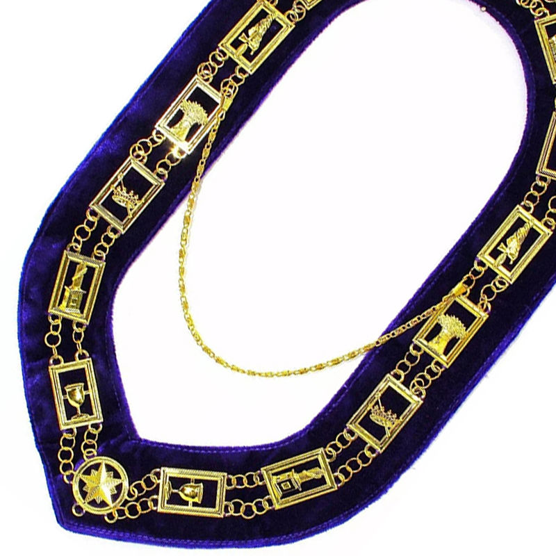 OES Custom Made High Quality Velvet Fabric Chain Collar Purple Backing Masonic Officer Jewel Order Star Collar