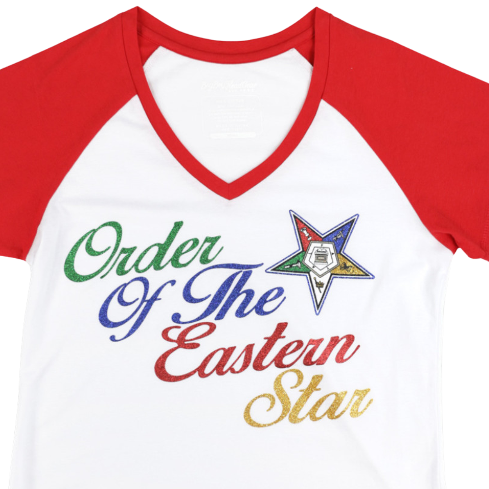 OES White V Neck Tee 100% Cotton Order of Eastern Star Shirt Custom Fraternity Sorority Apparel Embroidered Raglan Sleeve