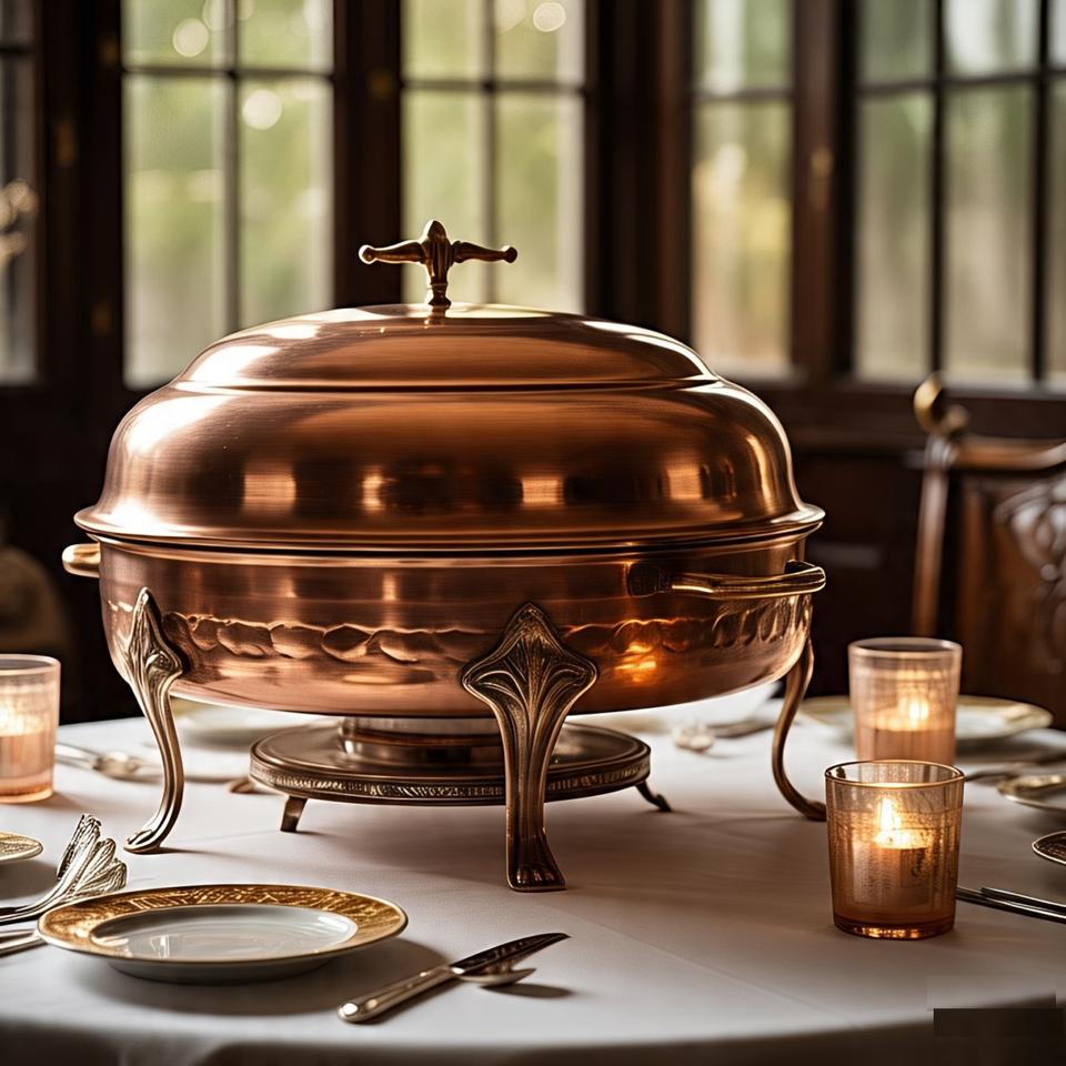 OLIVIA Elegant Copper Chafing Dish with Brass Fuel Gel Stand & Serving Spoon Buffet Server for Hotel Restaurant Storage Serving