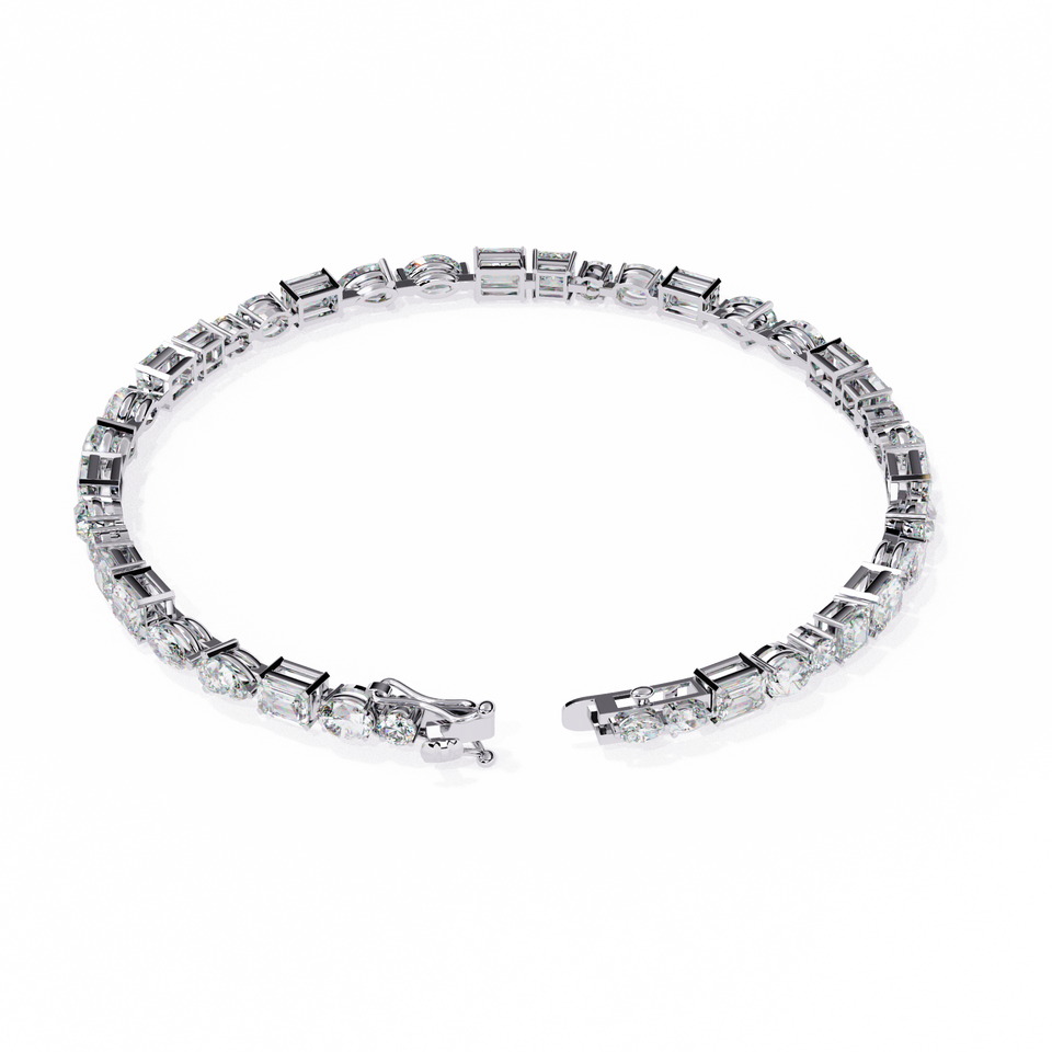 OMKAR JEWELS BR-043 Sterling Silver Rhodium Plated Ethnic Chain & Link Moissanite Bangle with Mixed Cut Multi-Shape Design
