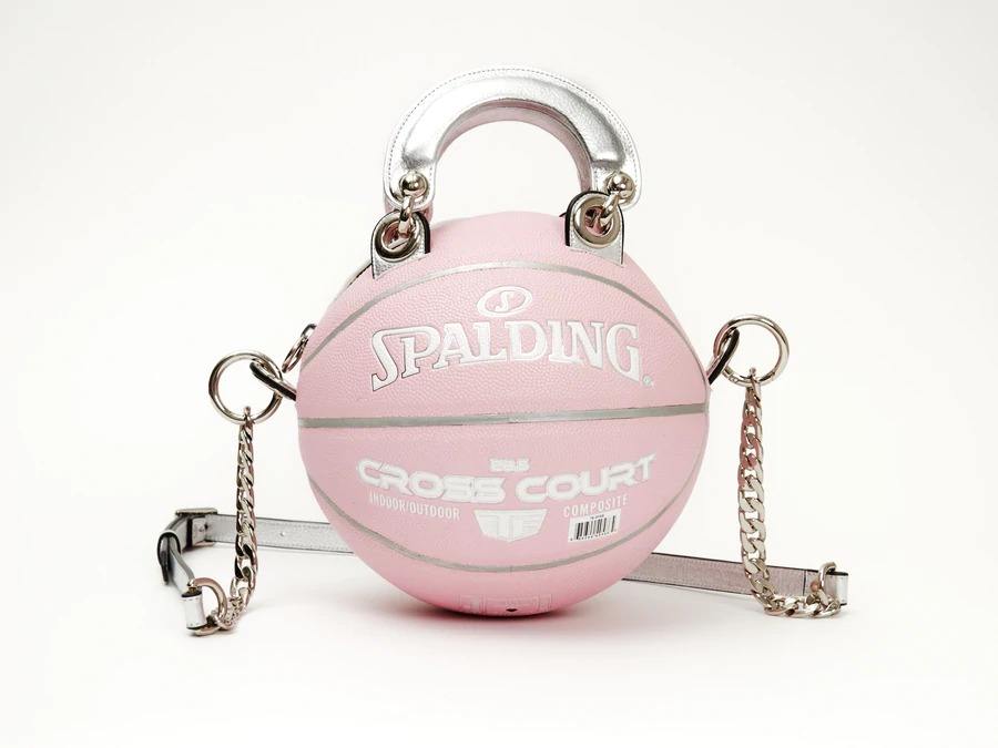 OMMiZ 2025-26 Women's Luxury Round Basketball Bag Cross Shoulder High Ranked Fashion Cross Court Light Pink Clutch Handbag