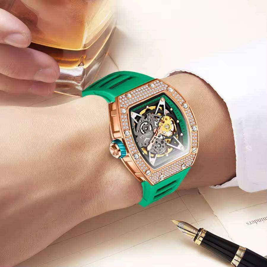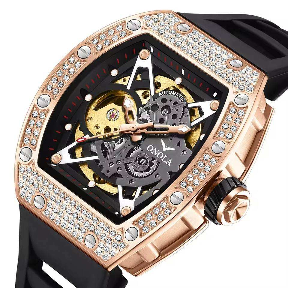 ONOLA 3838D Luxury Fashion Watch Hollow Out Fully Automatic Waterproof Men's Mechanical Watch With Diamond 3BAR Alloy