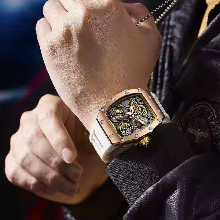 ONOLA 6829 Watches for Men Double Tourbillon Hollow Waterproof Luminous Fully Automatic Mechanical Men's Watch Montres Hommes