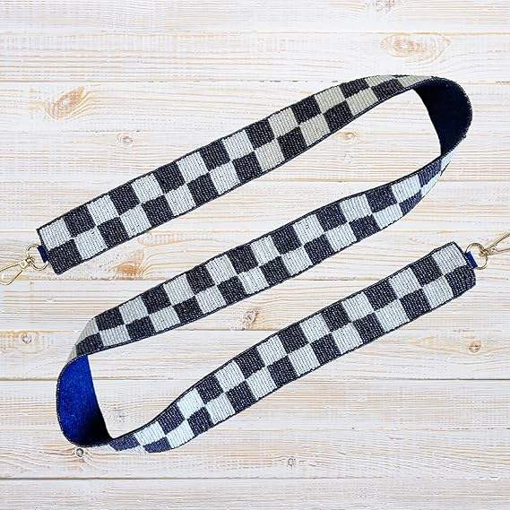 OOTD Fan Accessory Girls' Navy Blue White Beaded Purse Strap CHAKED Clear Stadium Bag Hanger by glowin fashion
