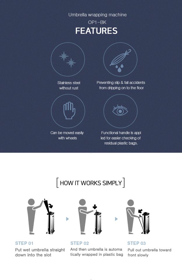 [OP1-GD] Wet Umbrella Wrapper Indoor Use Functional Handle Easy Mobility Rainy Or Snowy Days Solution Durability