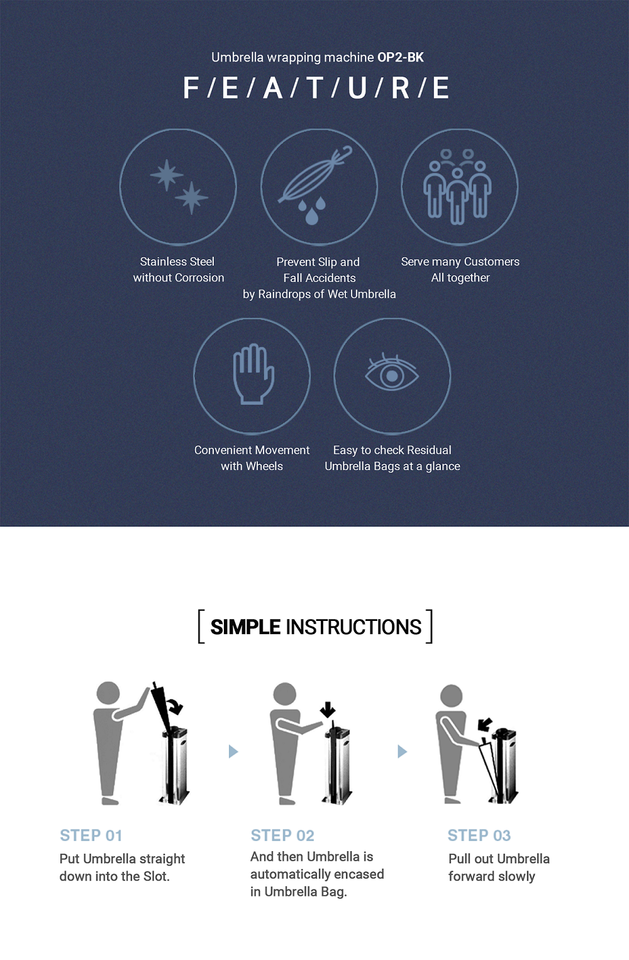 [OP2-PG] Effortless Wrapping Touch-Free Operation Soft And Curved Edge Design Clean Environment Wet Umbrella Holder