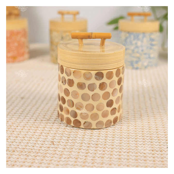 ORANGE MOTHER-OF-PEARL AND EGGSHELL INLAID BAMBOO STORAGE CONTAINER FOR TET HOLIDAY CANDY AND DRIED FRUITS