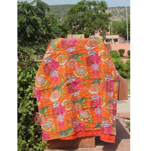 ORANGE Tropicana Kantha Quilt Vintage Kantha Quilt Cotton Bedding Bedspread Decorative Blanket Handmade Kantha Throw