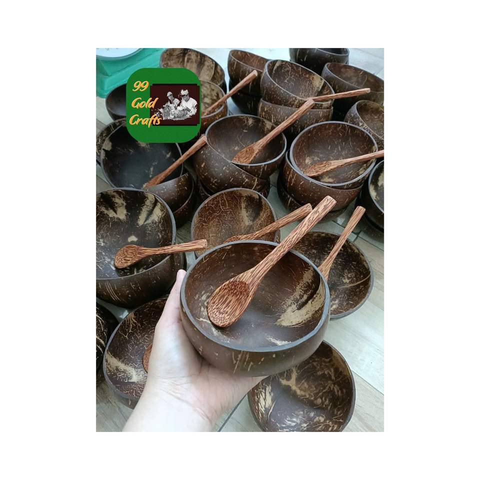 ORGANIC COCONUT SHELL BOWL WITH WOODEN SPOON ECO FRIENDLY HANDMADE PRODUCT FOR SALADS AND DESSERTS