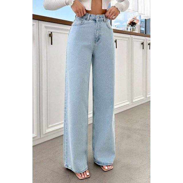 Product Name: Women Wide Leg Loose Fit Baggy Jeans., Fit Type: Baggy / Relaxed Fit., Waist Type: High Waist., Fabric: Soft Stretch Denim (Cotton + Stretch Denim)., Length: Full Length (~40 Inches)., Pattern Type: Whisker / Washed., Details: Whisker/ Frayed Edges/ Premium Thread Work., Closure Type: Zipper Fly with Metal Button., Pocket Type: 5-Pocket Classic Design., Fabric Features: Soft Stretch/ Breathable/ Durable/ Eco-Friendly., Wash Type: Enzyme Wash / Soft Finish., Stitching: Double-Needle Stitch for Reinforced Strength., Season: All Season (Spring / Summer / Autumn)., Usage / Occasion: Daily Wear Street Style College Travel Casual Outings., Available Sizes: 26 28 30 32 34 36 38 40.