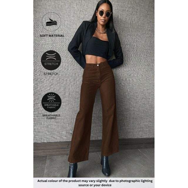 Specifications:Fit Type: Wide Leg / Loose Fit, Waist Type: High Waist, Fabric: Stretch Denim (Cotton + Stretch Denim), Length: Full Length (Approx. 40 inches), Closure Type: Zipper Fly with Metal Button, Pattern Type: Solid / Plain, Pocket Type: 5-Pocket Classic Design, Stitching: Double-Needle Durable Stitch, Details: Clean Look / Minimalist Finish / Premium Thread Work, Wash Type: Enzyme Wash / Soft Finish