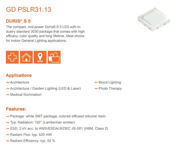 OSRAMs DURIS S 5 GD PSLR31.13-1U3U-25-1 0.94W 6.25v 439-461nm Deep Blue Lighting Led Chip For Mood Lighting