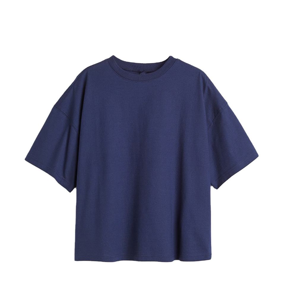 OUNA Wholesale Custom Men's Oversized Hip Hop Anti-Wrinkle 300g 100% Cotton Plus Size Loose Fit Tee with Front Print Logo