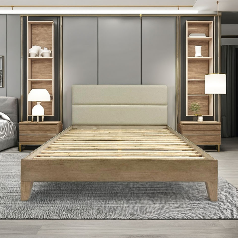 Solid Oak Wood Bed Frame with Upholstered Headboard Platform Bed Custom Furniture Made in Vietnam International Standards