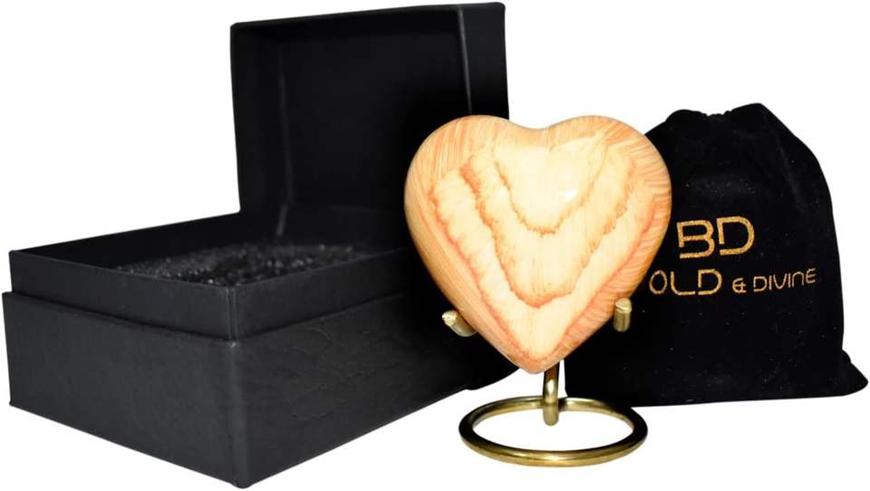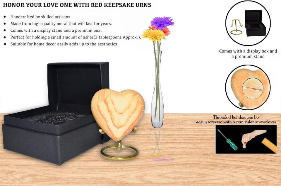 Oak Wood Design Urn Keepsake - Mini Heart Cremation Urn with Stand & Premium Box - Small Keepsake Urn - Honor Your Loved One