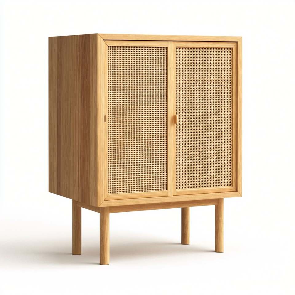 Oak Wood Large Capacity Wooden Shoe Organizer Racks Storage Cabinet With Rattan Doors