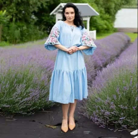 Occasion Wear Floral Embroidered Ukrainian Dresses for Women round-Neck Designer Mid Length Ukrainian unique best Dresses