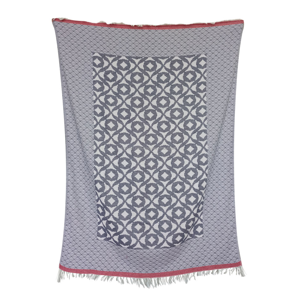 Occhio Navy Red Throw Jacquard Blanket 130x170 cm - 51x67 Inches Heavy and Luxury 100% Cotton Jacquard Collection ThrowBlanket