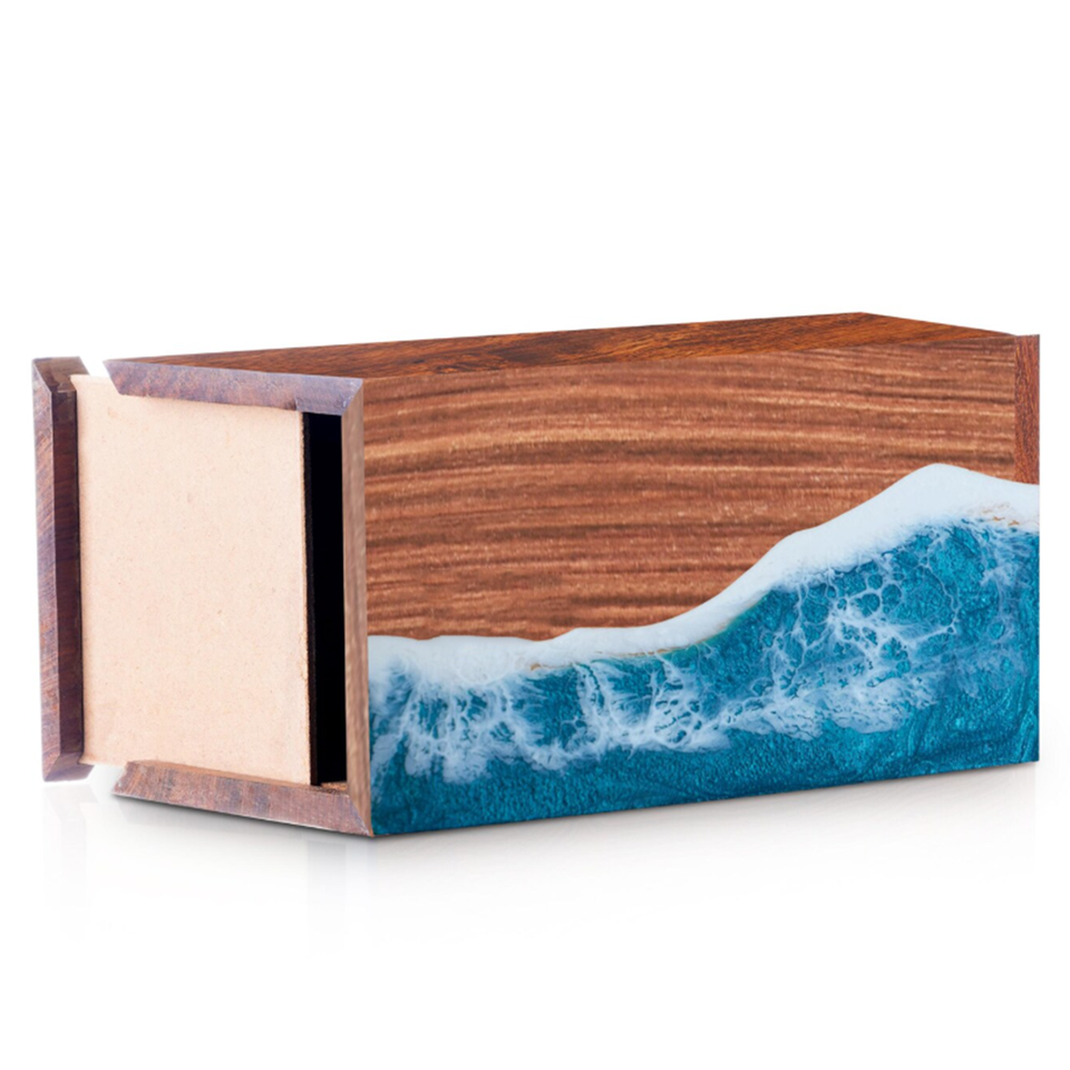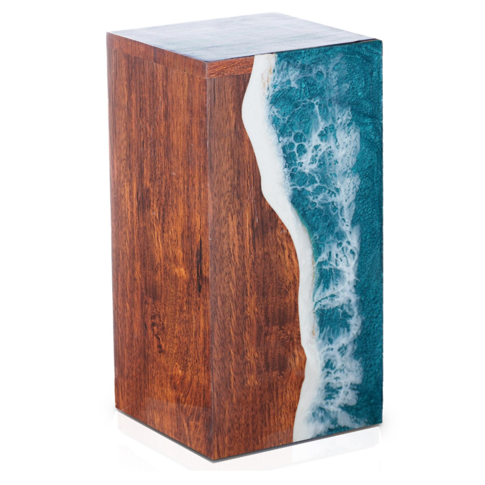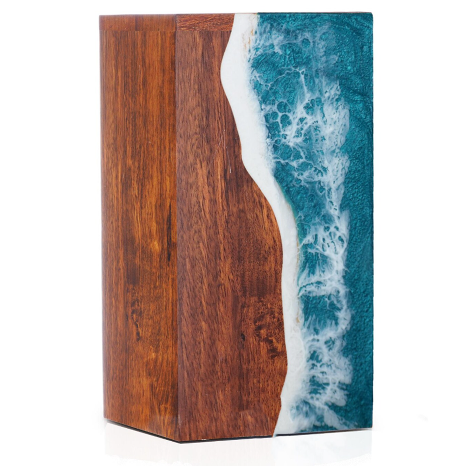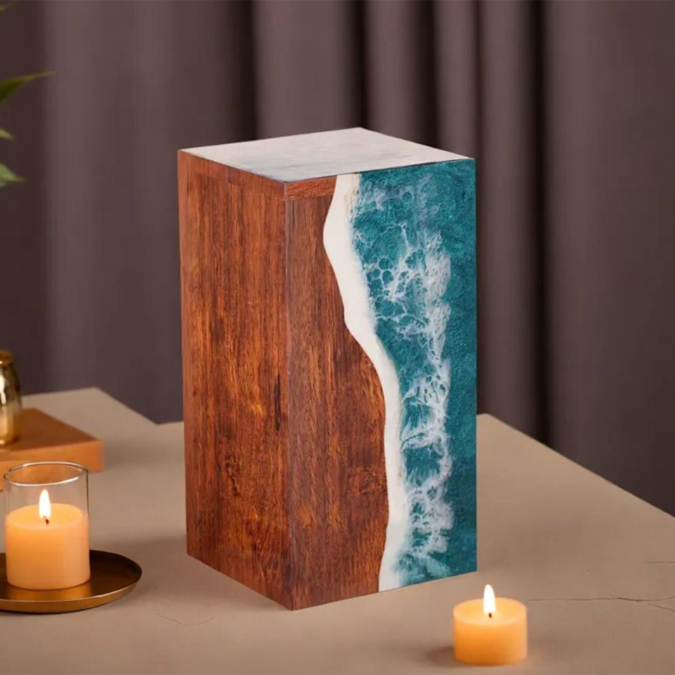Oceanic Elegance Handcrafted wooden cremation urn with resin art unique memorial or home decor by AYAANS