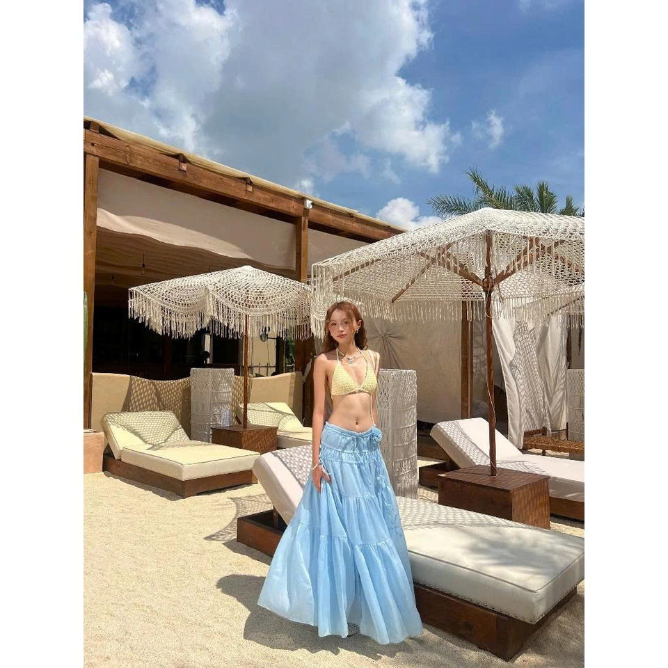 Oceva Skirt Two-Layer Skirt, Women's Skirt, Long Two-Layer Multi-Layer Flared Chiffon Skirt