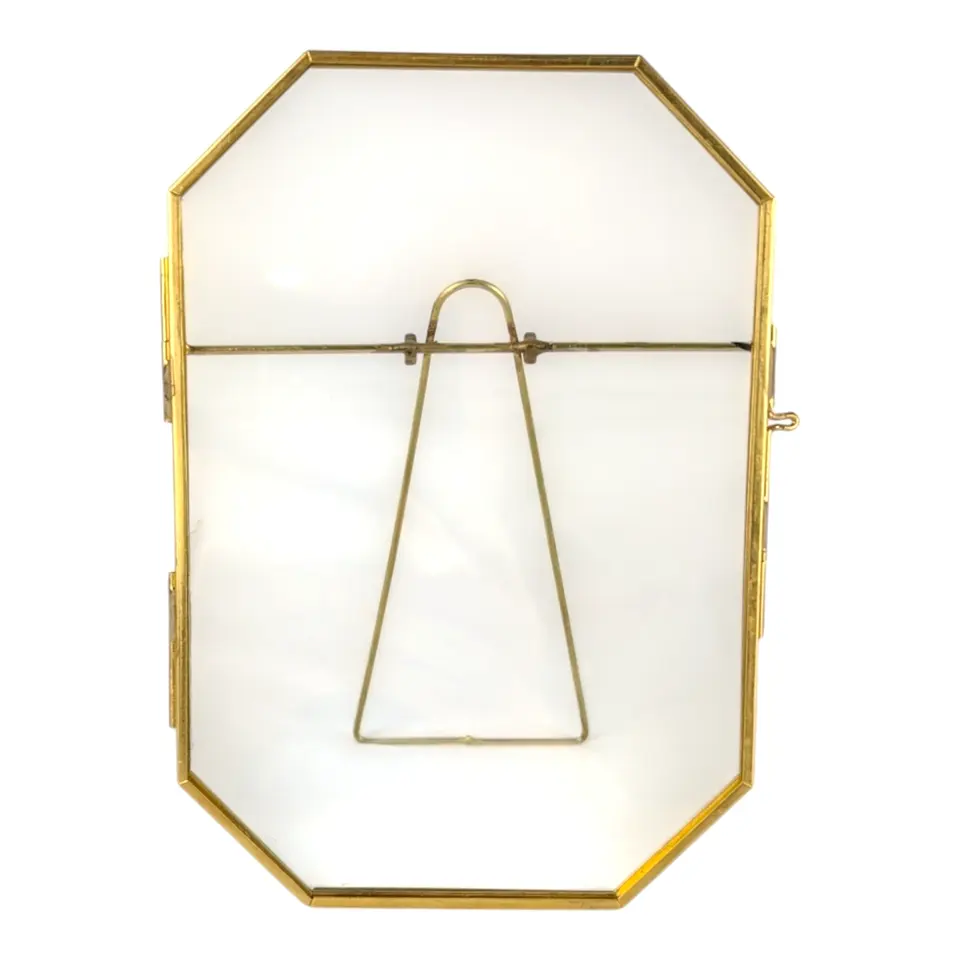 Octagonal Gold Glass Tabletop Photo Frame, Unique Geometric Shape Metal Display Frame for Portraits, and Special Memories