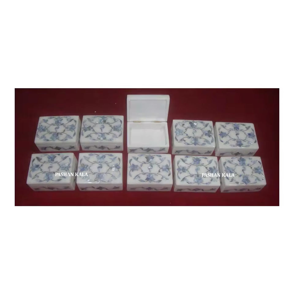 Indian White Marble Inlay and Carving Floral Design Octagonal Shape Handmade Jewelry Box for Corporate Gifting Durable Polished