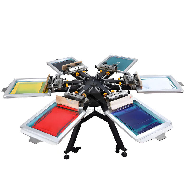 Octopus 6-Station 6-Color Screen Printing T-Shirt Machine with Manual Operation and 500x600mm Print Area