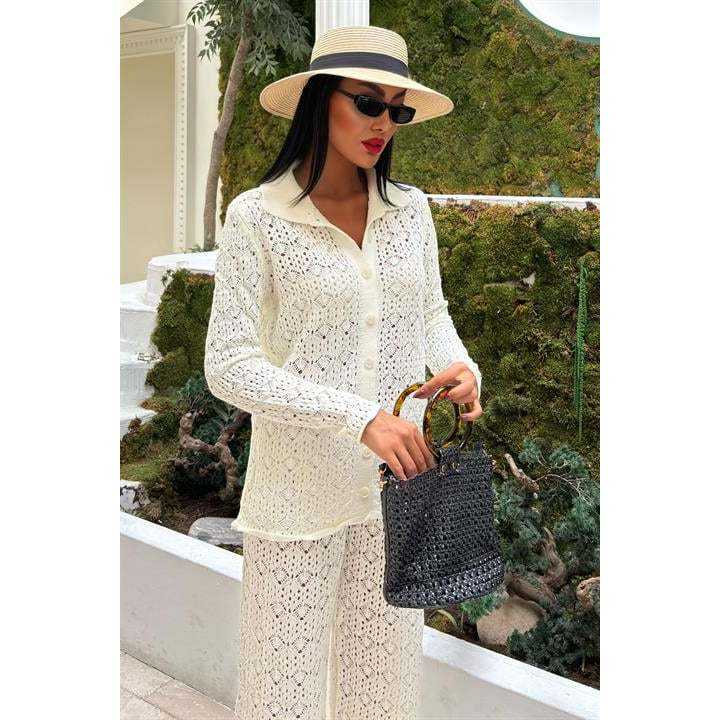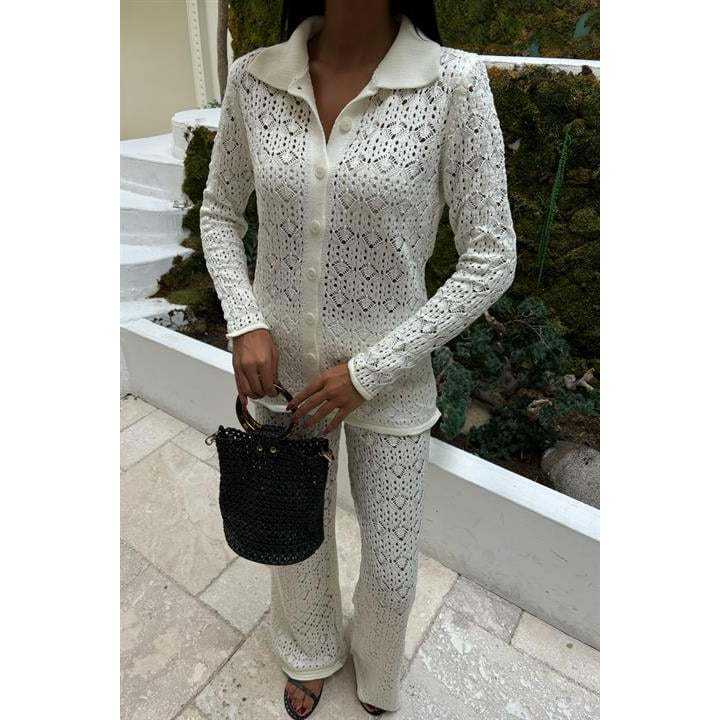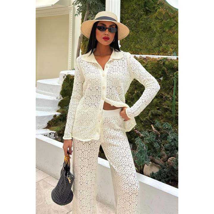 Odette Openwork Knit Casual Summer Trousers Set Breathable 9934 Style
