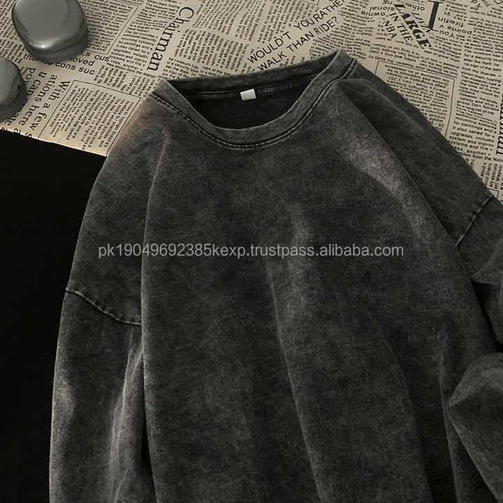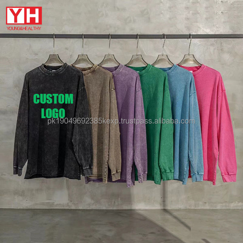 Oem Custom Blank Heavyweight Acid Wash Oversize Tshirt Vintage Long Sleeve T-Shirt for Men Cotton Acid Wash Long Sleeve T Shirt