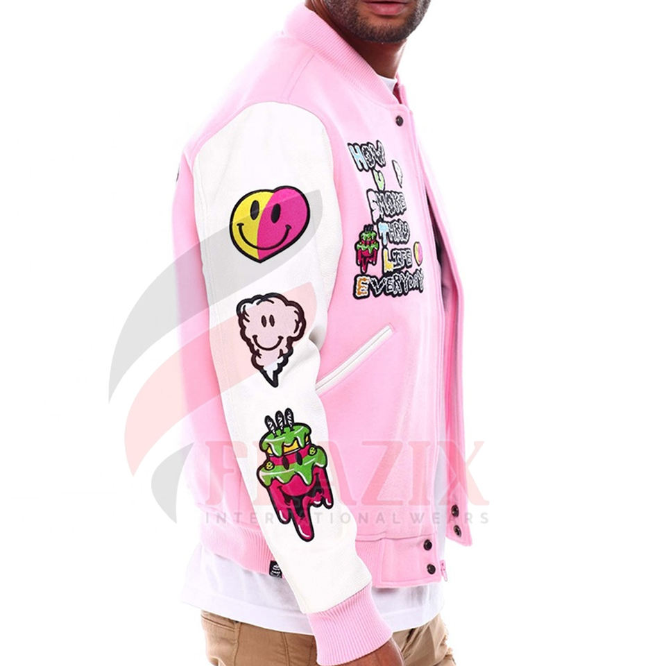 Product Name:Fleece Fabric Bomber Jacket With Chenille Embroidery Patches