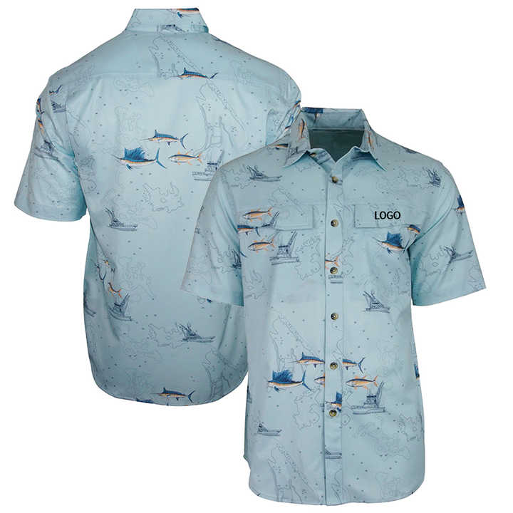 OEM Custom Logo Men's Summer Rayon Short Sleeve Floral Shirt 100% Polyester Waterproof Lapel Fishing Shirt