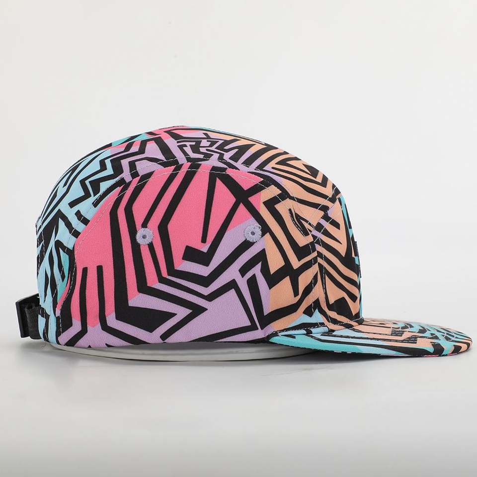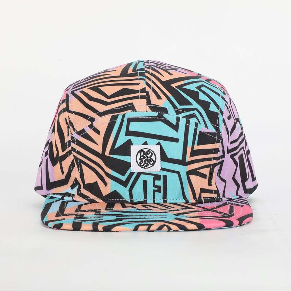 Oem Custom Men Women 5 Panel Unstructured All Over Printing Camp Hat,Woven Label Logo Sublimation Camper Running Cap