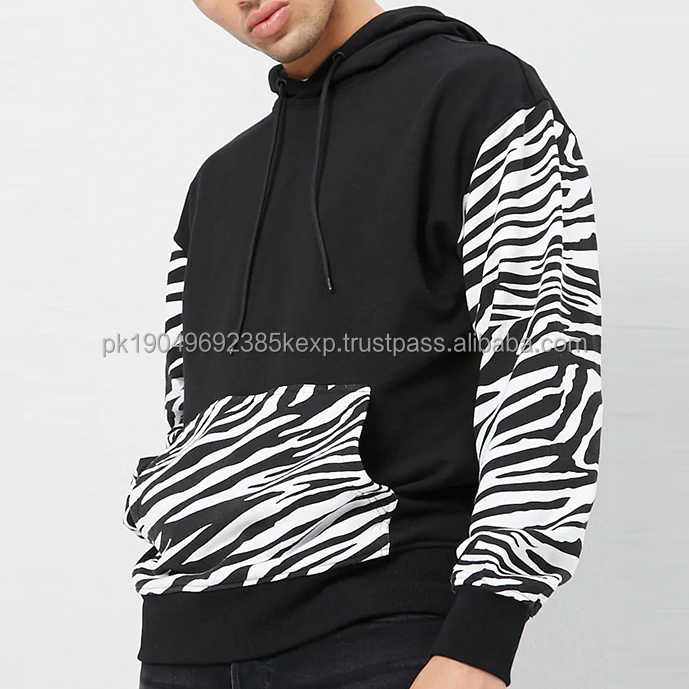 Oem Custom Sustainable Thin French Terry Quality Hoodie Leopard Printed Pocket Sleeves Plain Black Fitted Hoodies Unisex