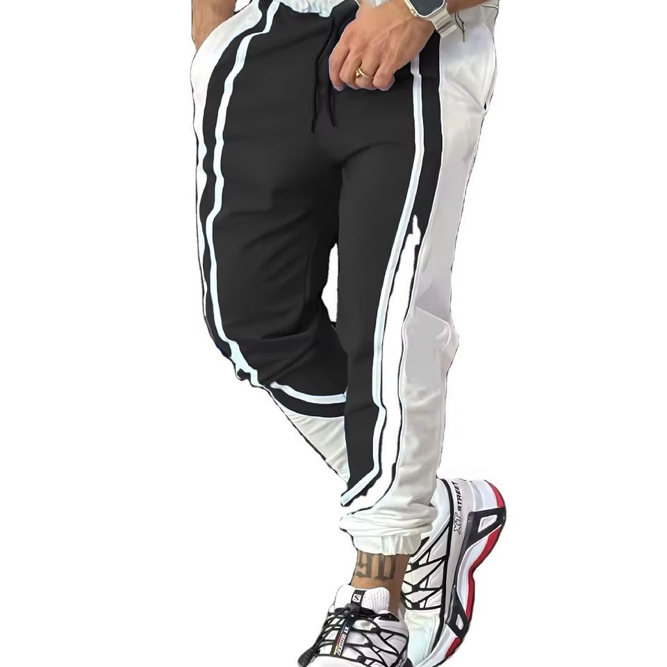 Oem Customized logo Design Black and White Drawstring Trousers Spring Summer Fashion Men's Sports Leisure Trousers Sweat Pants