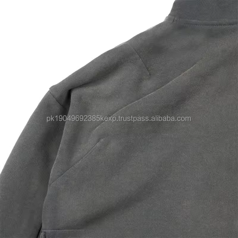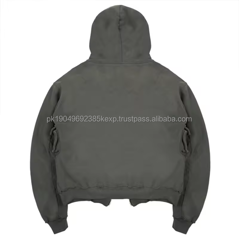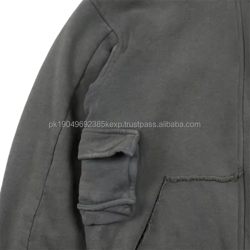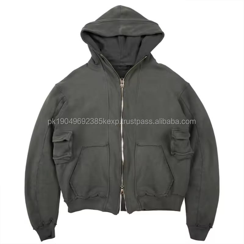 Oem Distressed Acid Washed Functional Cargo Hoodie Cotton Heavyweight Custom Zip Up Sweatshirts Men's Full Zipper Hoodies