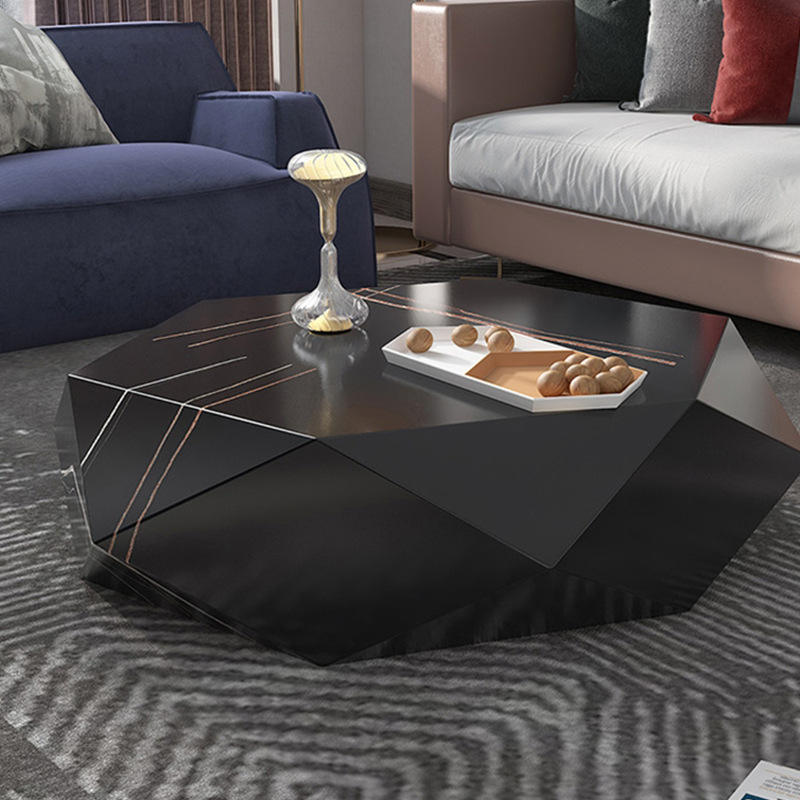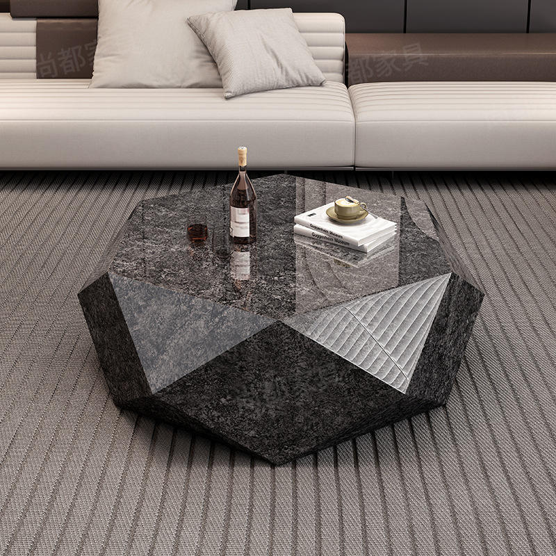 Oem Factory Custom Sculptural Shape Diamond Rhombus Sintered Marble Stone Slate Coffee Table for Living Room