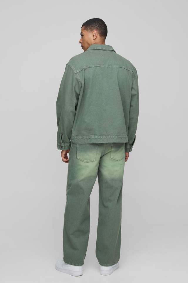 Oem Green Washed Front Double Pocket Custom Men Denim Jacket Plus Size Sleeves Denim Jacket For Unisex