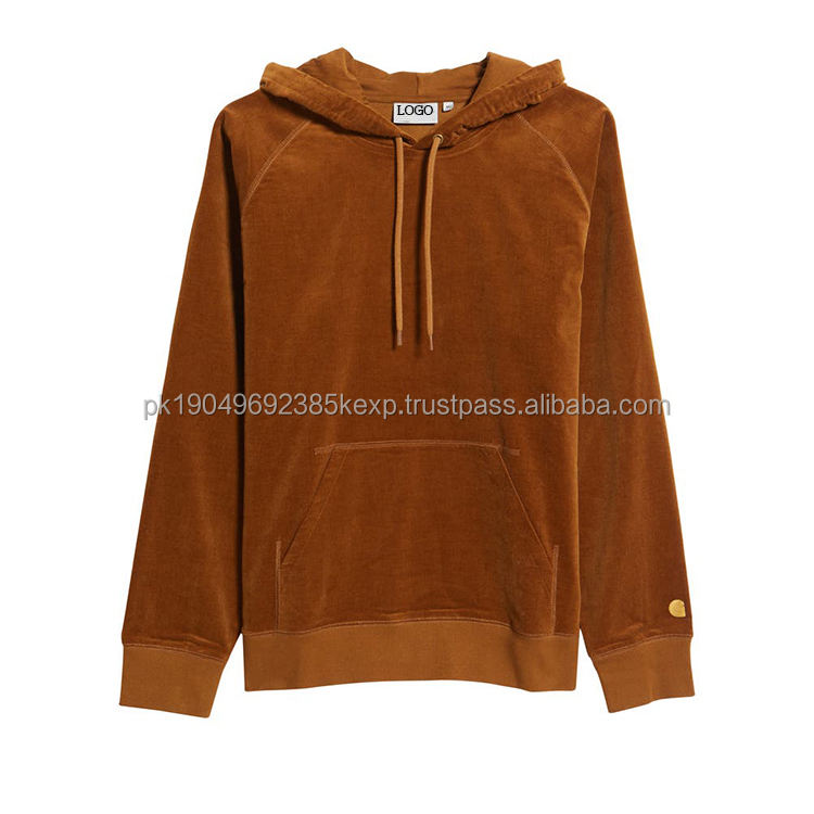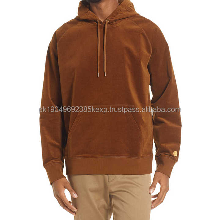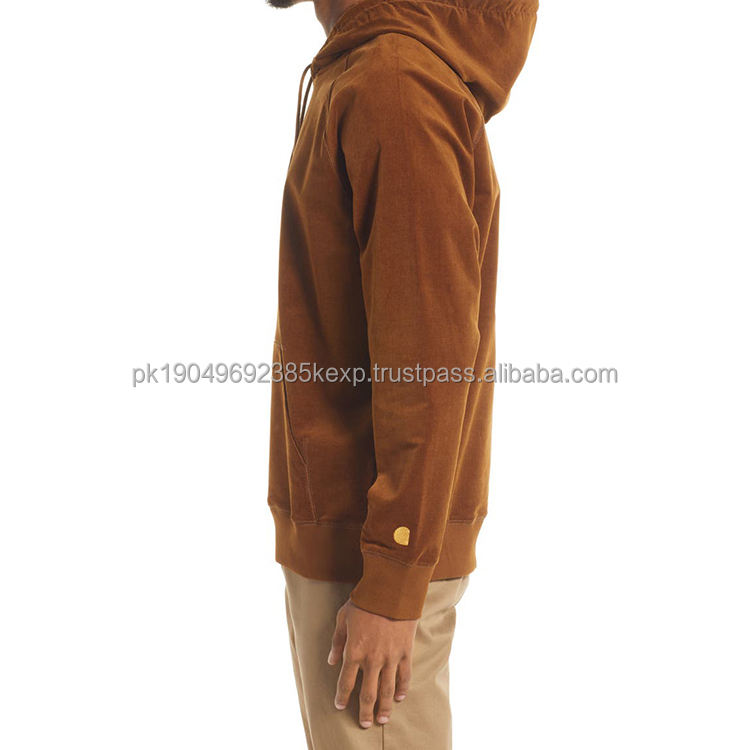 Oem High Quality Premium Hoodies Custom Logo Embroidery Vintage Heavyweight Brown Corduroy Hoodie