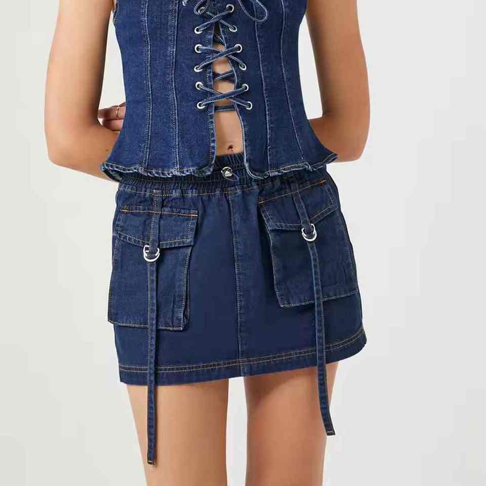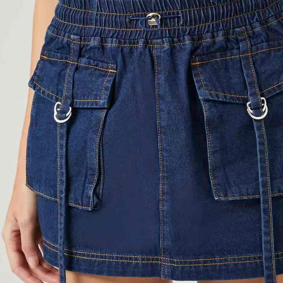 Oem Ladies High Rise Embroidered Straight Denim Hip Mini Skirt Summer Casual Zipper Design High Split A Line Wash Blue