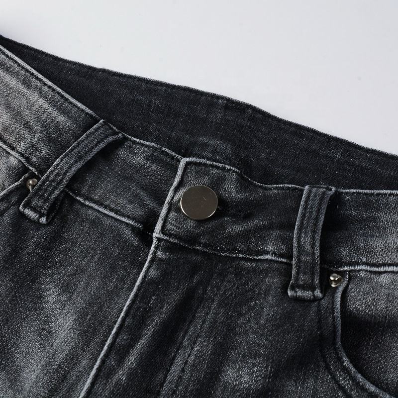 Oem Men'S Black Slim Fit Stretch Jeans 5 Pocket Basic Denim Wrinkled Casual Men Pants Size 28 - 40