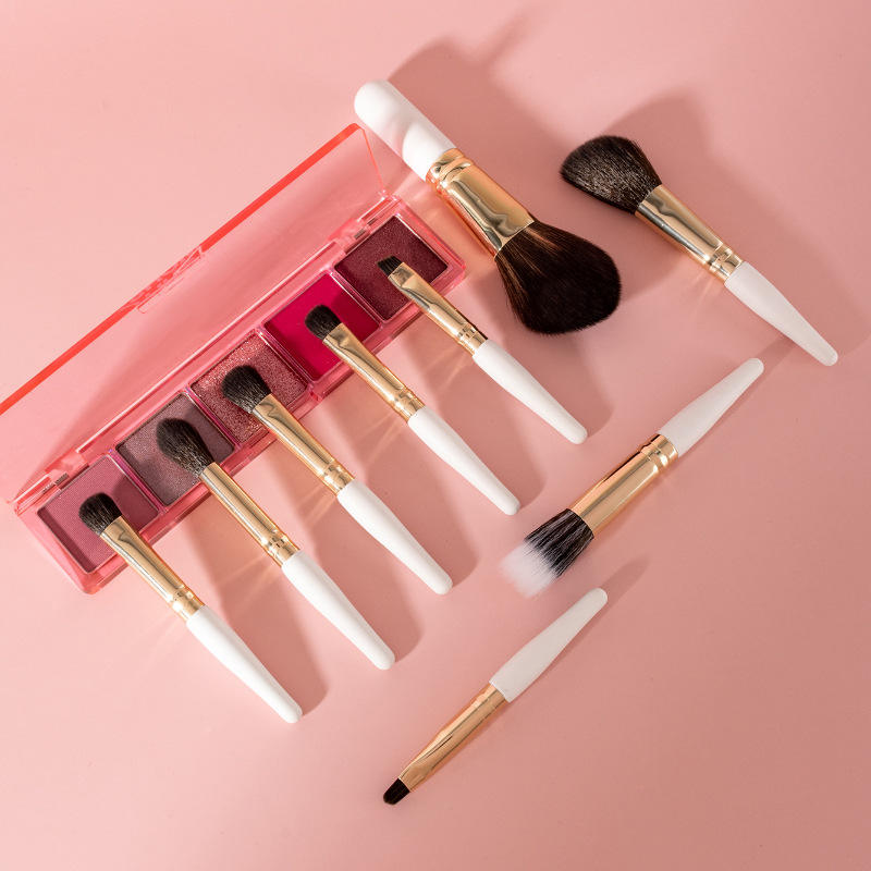 OEM Mini Natural Vegan 9pcs Travel Makeup Brush Set Short Handle Powder Blush & Eye Shadow Detail Brushes Free Sample