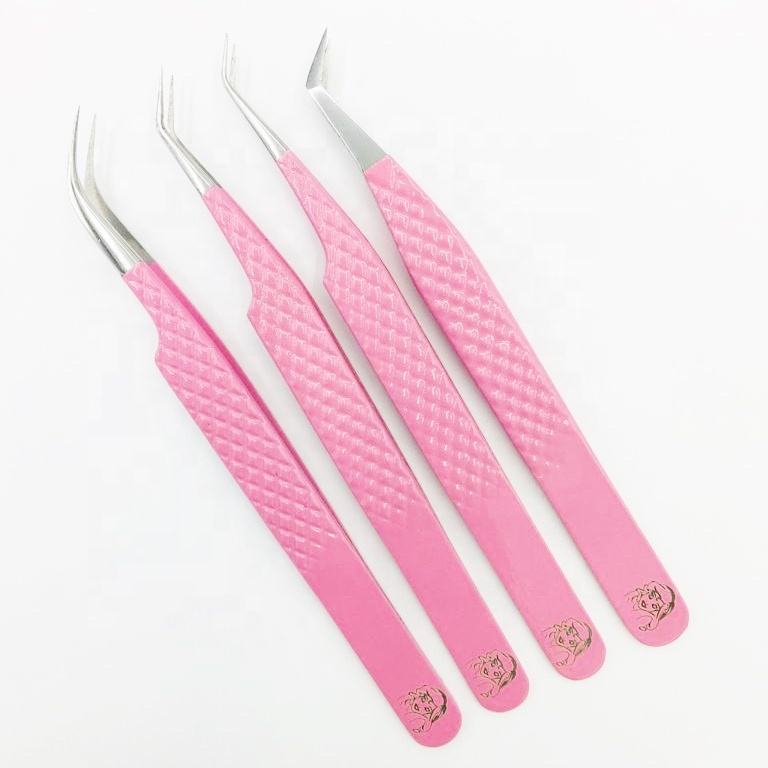 Tweezer Pointed Stainless Steel Eyelash Extension Tweezers Anti-Magnetic Comfortable Handle Private Label Logo Sustainable mink