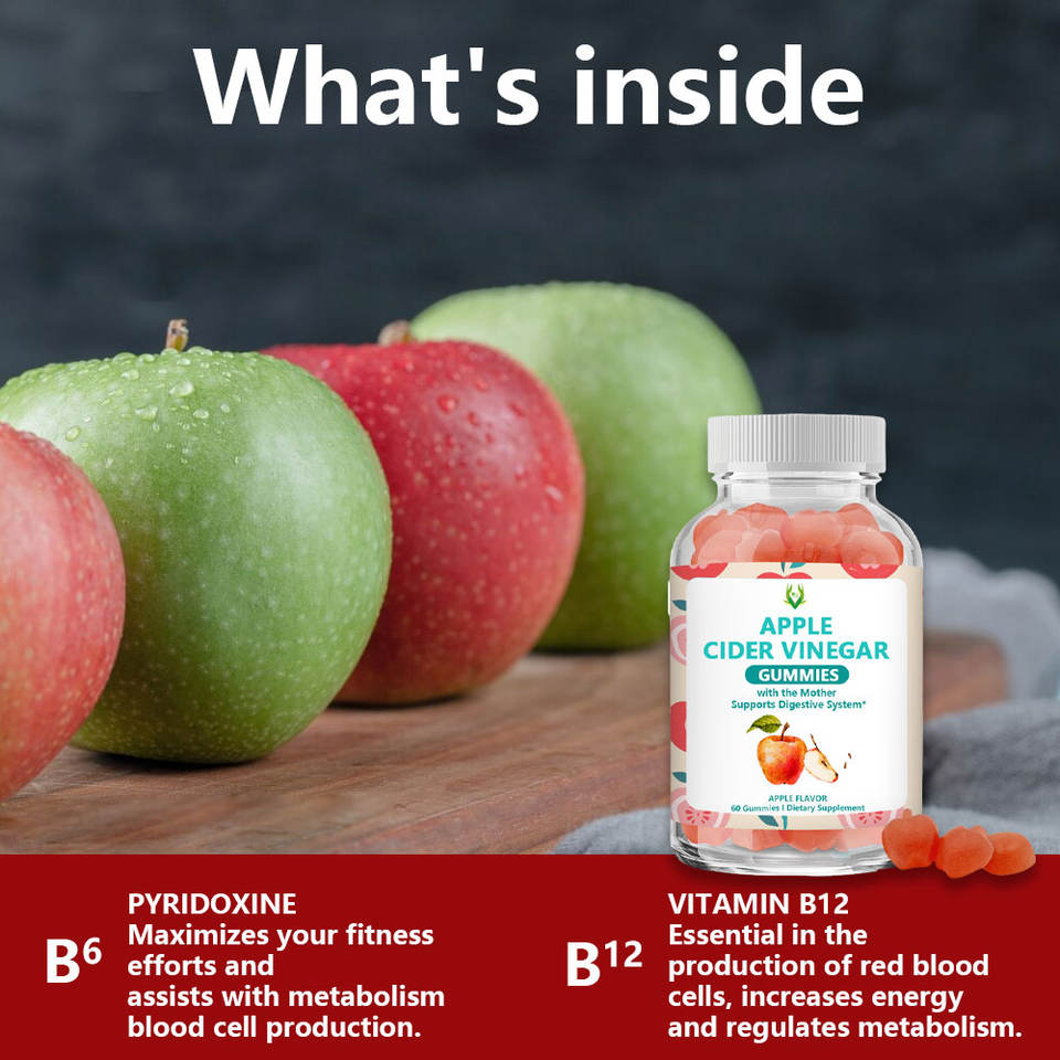 Oem Odm Apple Cider Vinegar Gummies with Vitamin B6 B12 Folate Digestive Support Immune Health Apple Flavor 60 Count