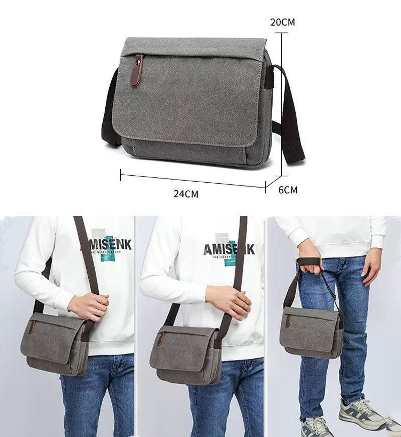 Oem Odm Canvas Crossbody Bag 24x20x6cm Lightweight Portable Travel Outdoor Work Messenger Bag for Men Women