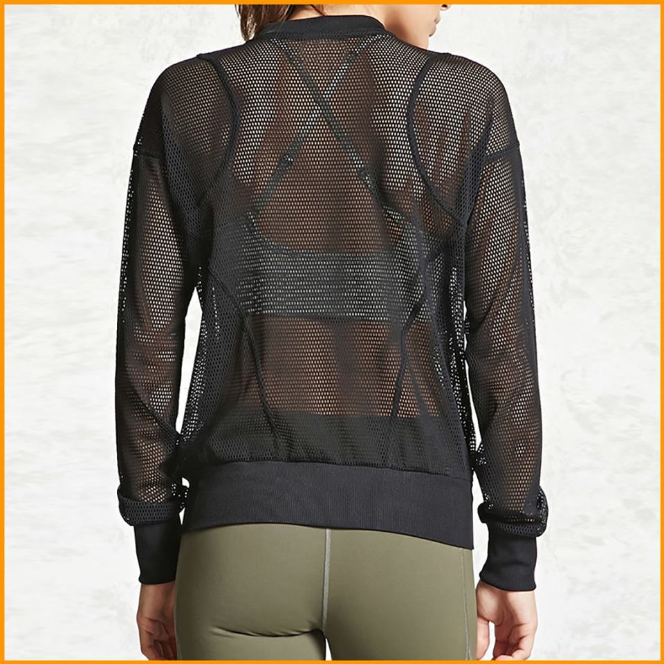 Oem Odm High Quality 100% Polyester Sexy Black Mesh Cool Style Women Jackets Wholesale Workout Clothing